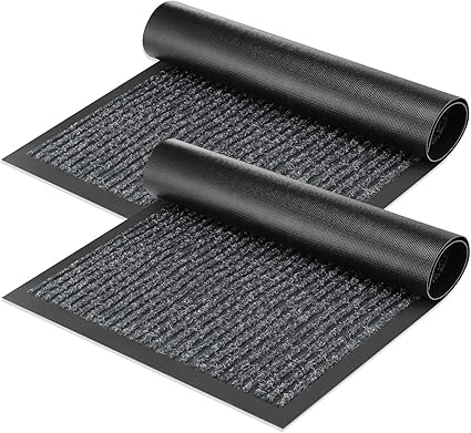 Amazon 丈夫なドアマット 屋内と屋外用 ゴムフロアマット 防水 お手入れ簡単 滑り止めウェルカムマット 17x30インチ 2点 17 30 グレー 玄関マット